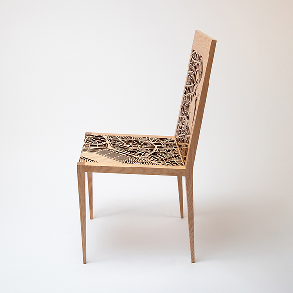 “The design has a universal appeal,” she continued, “since we literally can produce chairs for any city, any place, and any time-period for which maps exist. Anyone who looks at the chair can imagine which city they would do and what time periods they would choose in order to narrate their unique story.”