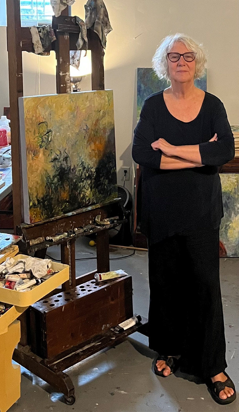 Brown has worked from her Dorchester studio for several decades. “I bought an old Victorian house that had two brick art buildings with three other art people,” she says, “and then, in a relatively short time, I bought them all out and I’ve been there ever since. So, I’ve always had a 500-square-foot studio downstairs from where I live.” Having such unlimited access has made it possible for Brown to experiment freely and pursue her ideas. “That’s the way that I work best. I can be in the studio at night. I can be in the studio in the early morning.…I get to be down there, and I get to engage. And I really feel like I’ve been very fortunate that I’ve been able to be a studio artist my entire adult life.…I’ve organized my life around being able to be in my studio.”